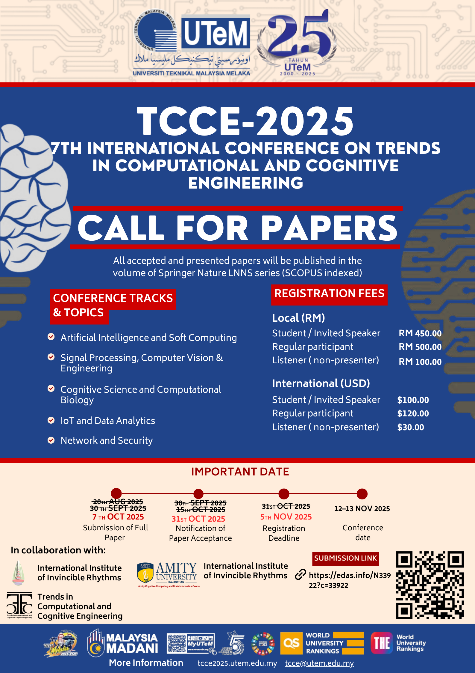 We invite researchers, academicians, industry professionals, and postgraduate students to submit original and unpublished work to the International Conference on Trends in Computational and Cognitive Engineering (TCCE-2025).